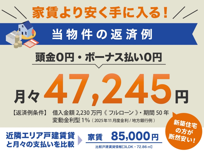 家賃より安く新築住宅を手に入れよう!今の家賃と比べてください!