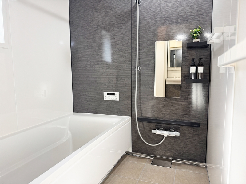 ■対面システムキッチンや追炊き機能付のユニットバス、温水洗浄便座付きのトイレや三面鏡付きシャンプードレッサー等設備も充実