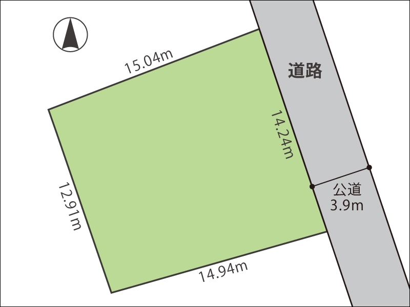 接面道路 | 公道 東側3.9m 接面14.24m | ||