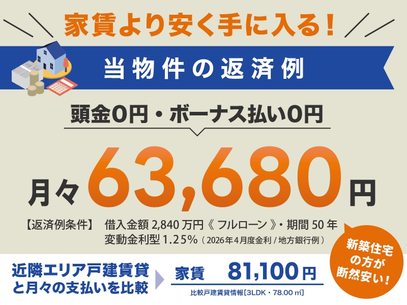 家賃より安く新築住宅を手に入れよう!今の家賃と比べてください!