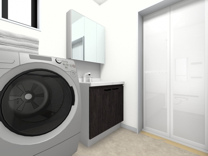 衝撃に強いホーローボウル、シャンプードレッサー付きエコ水栓を採用し、収納たっぷりの三面鏡仕様の洗面化粧台です。