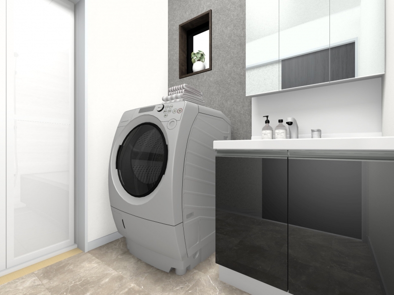 ■対面システムキッチン(食器洗乾燥機付き)や追炊き機能付のユニットバス、温水洗浄便座付きのトイレや三面鏡付きシャンプードレッサー等設備も充実