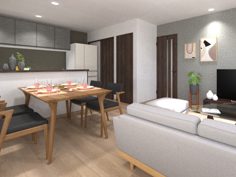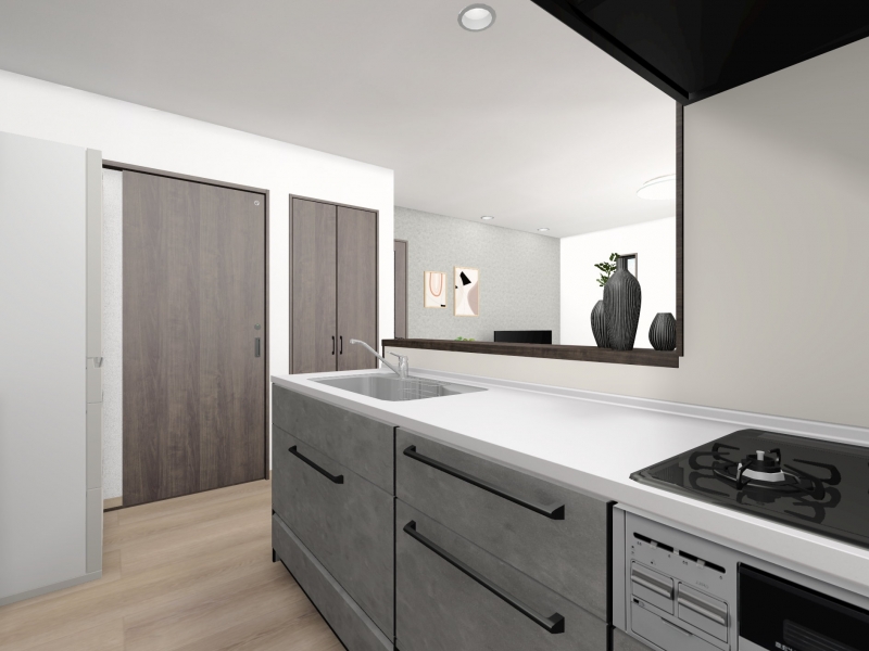 家事導線・生活の導線に優れた対面式キッチンを採用しています。空間の邪魔をしないLDKに溶け込んだデザインが魅力的で、毎日の生活を華やかに彩ります。 ※ 食器洗浄乾燥機は、付いていませんが、施工開始前に限りオプションで追加可能です。