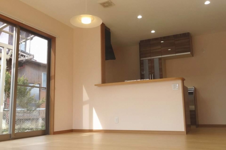 ダイニングキッチンやソファーを置いても、広々快適16畳LDKです。フラットな間取なので、空間を無駄なく使用できます。