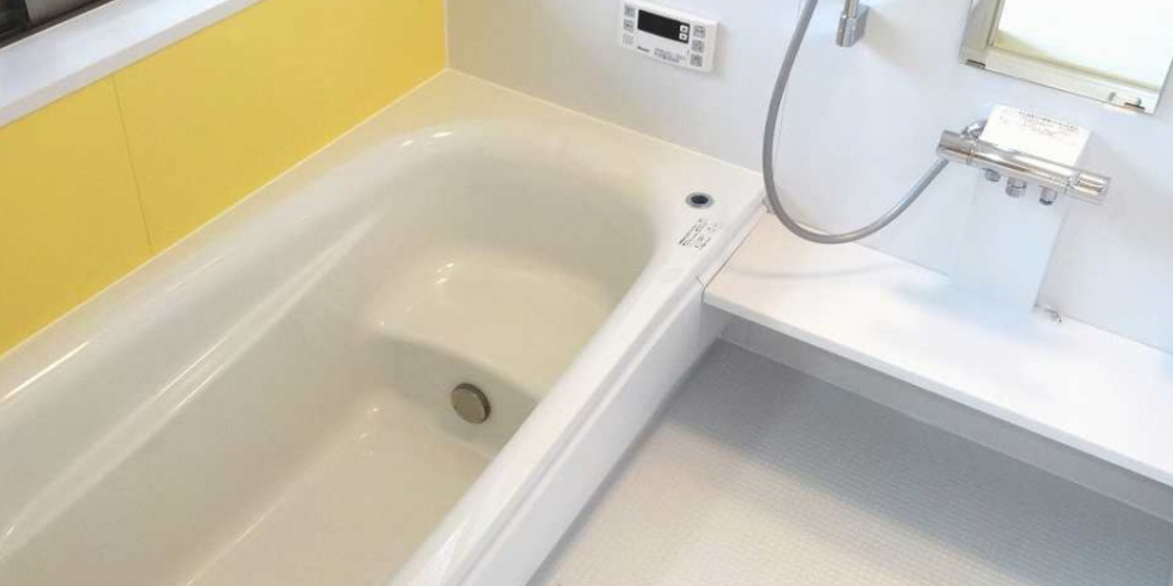 ビビッドなカラーがアクセントな、一坪サイズの広々システムバスです。 足を伸ばして1日の疲れを癒せます。