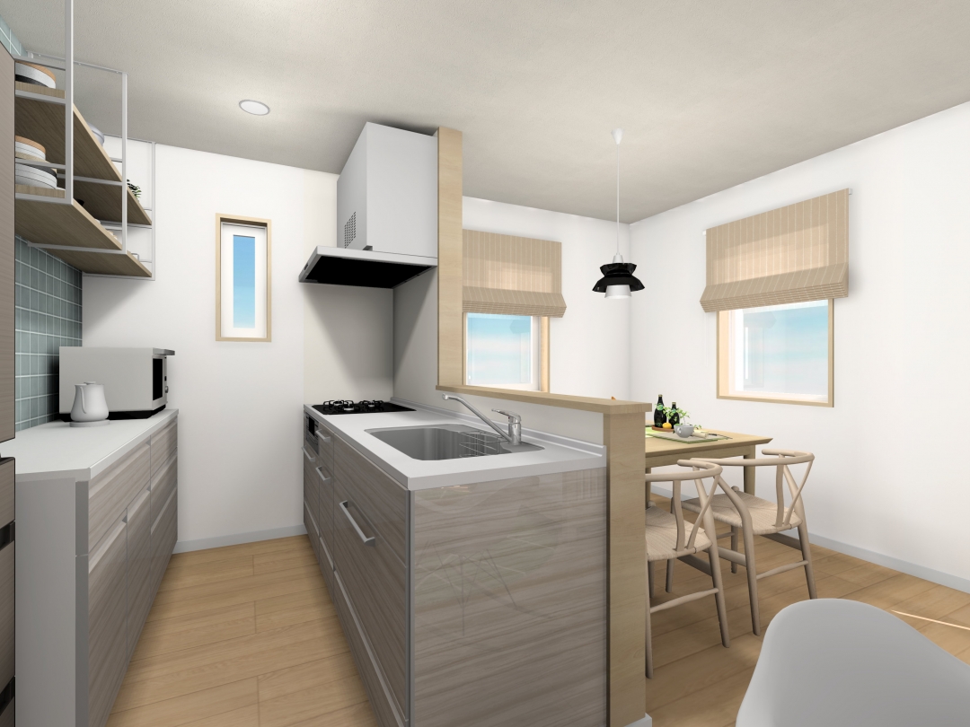 大切な家族を見守れる対面式タイプを採用しました。機能的でお手入れもしやすく、使い勝手の良いキッチンです。