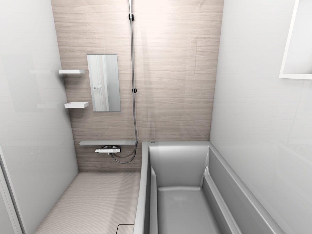 バスルームは1 日の疲れを洗い流し、リラックスできる場所。広々とくつろげるよう浴室スペースを1 坪以上確保しました。足をのばしてゆったりと入浴していただけます。